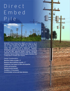 Helical piles offer several benefits. They can reach practically unlimited depths (150+ feet) for areas with deep soft soil conditions. Their slender shaft and large bearing plates are ideal for expansive/collapsible soils. They install easily in high groundwater tables. Installation can be done in all seasons including cold weather and through frozen ground (predrilling may be needed). A very important factor when working near energized lines is that helical piles can be installed in short sections with low-headroom using compact equipment. Even when geotechnical data is limited, it is okay to use helical foundations because final torque can be used to verify capacity, and they can be proof tested in the field with pull-out tests.