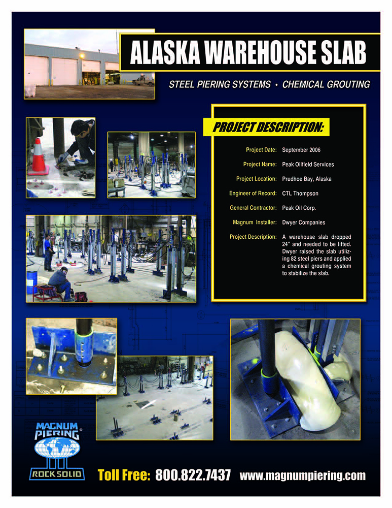 Case history utilizing Magnum foundation products for warehouse underpinning and elevation