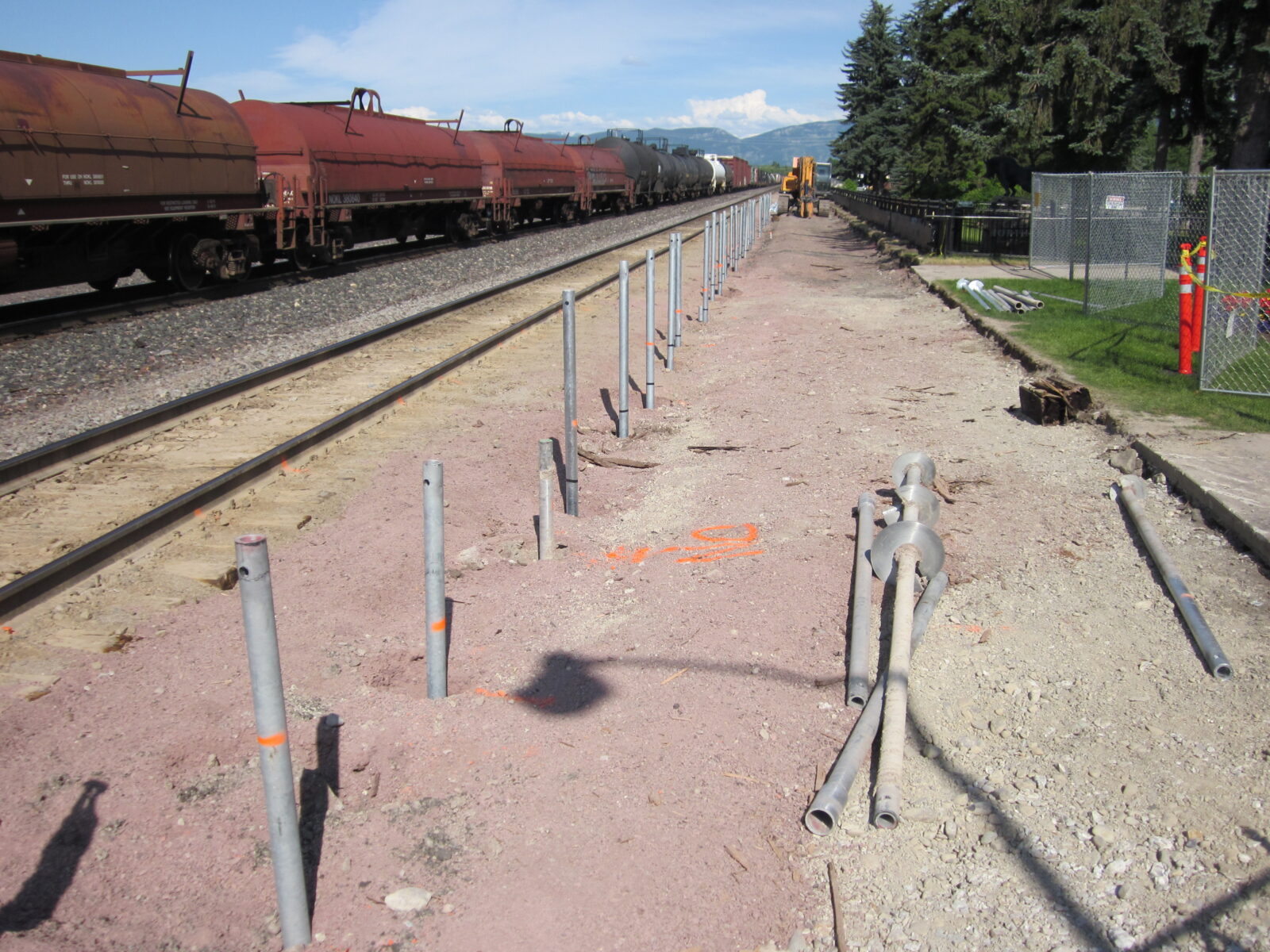 Amtrak Platforms were reconstructed in 5 stations by adding concrete platforms. This created safer and more convenient loading and unloading area for pedestrians. Original plans called for drilled concrete piers. Drilled concrete piers could not be utilized due to contaminated soils, live tracks and limited overhead access. Helical piles were use to overcome these issues. Helcial piles can be used in low overhead areas and wont produce drill spoils. Small equipment and crews are needed for helical pile installations.