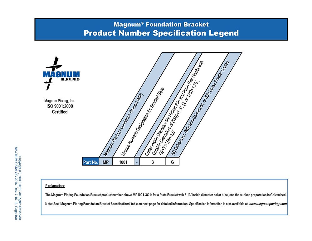 Table which describes how to read part numbers for Magnum foundation brackets