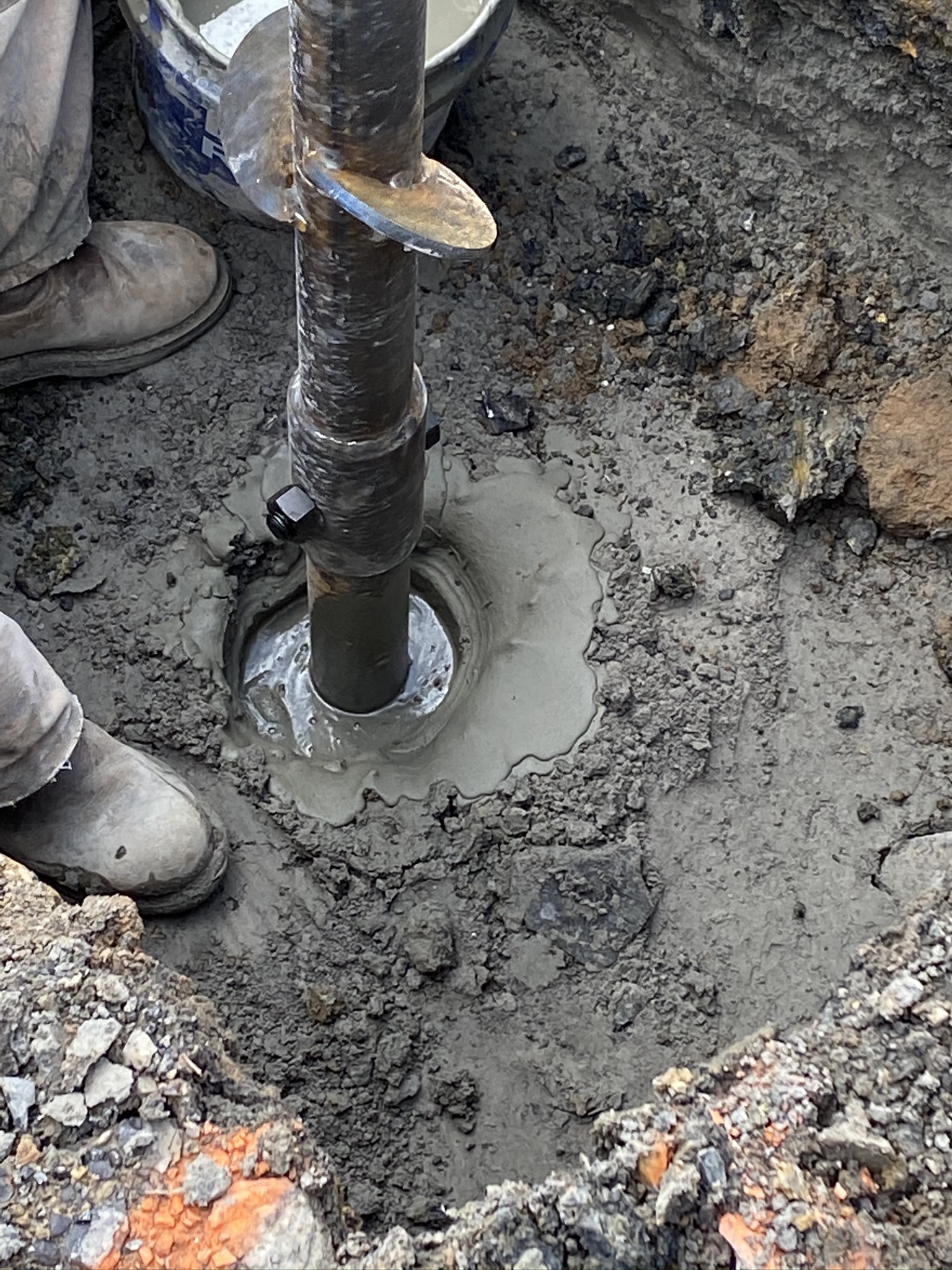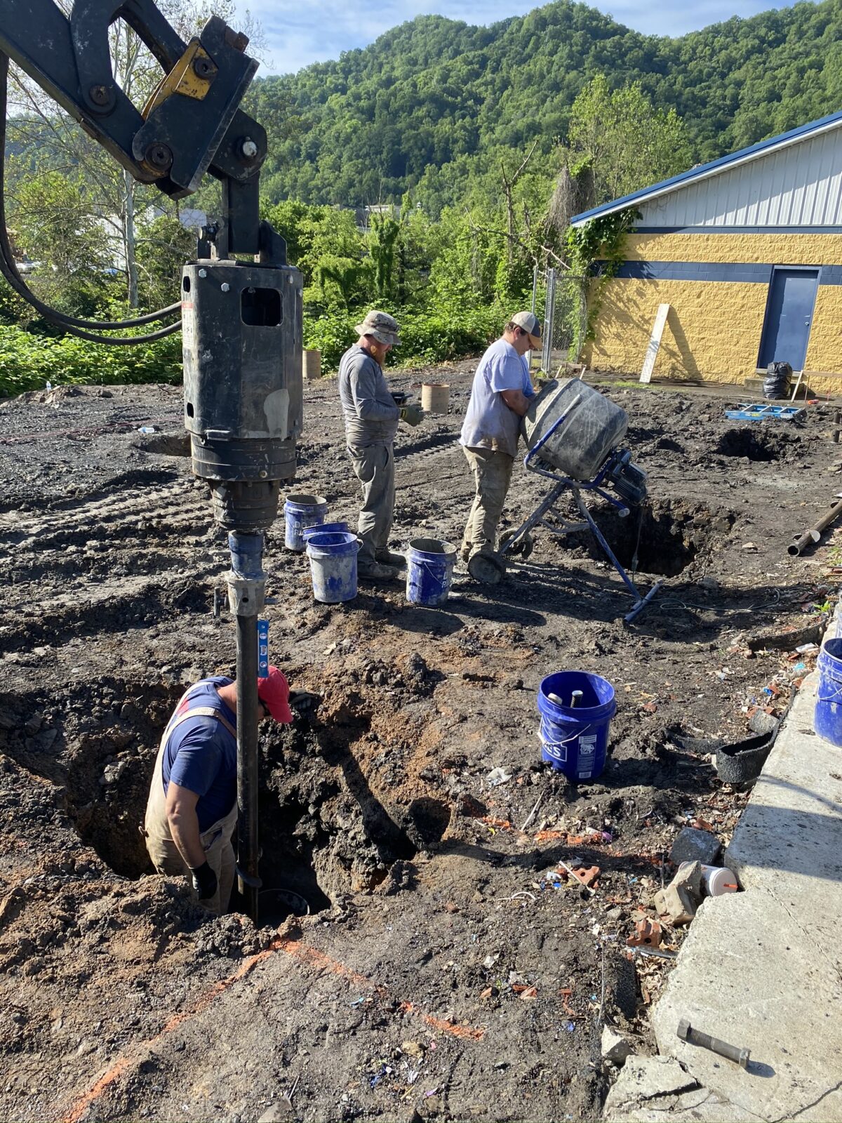Install 45 grouted helical piles for the foundation of new bleachers at Logan High School Football Field. The school and football field are located on a narrow island in the Guyandotte river known as Hatfield Island. Most of the soil was random fill, coal refuse, and slate. This was brought in many years before from local mining operations. Because of the poor soils, Kanti Patel at American Geotech called out for these piles to be the Magnatude Piles. The end bearing on the bedrock roughly 40' below the top of pile.