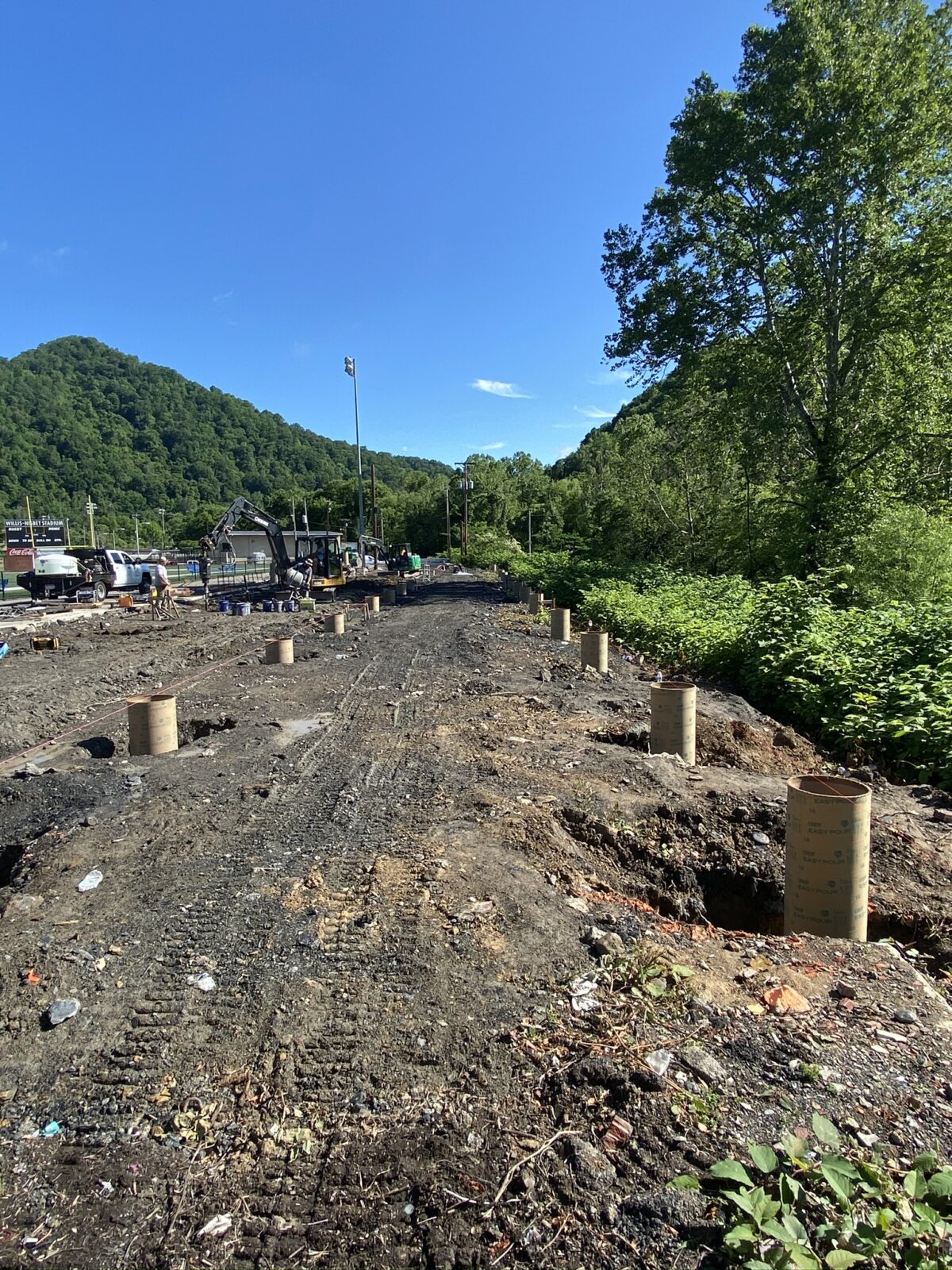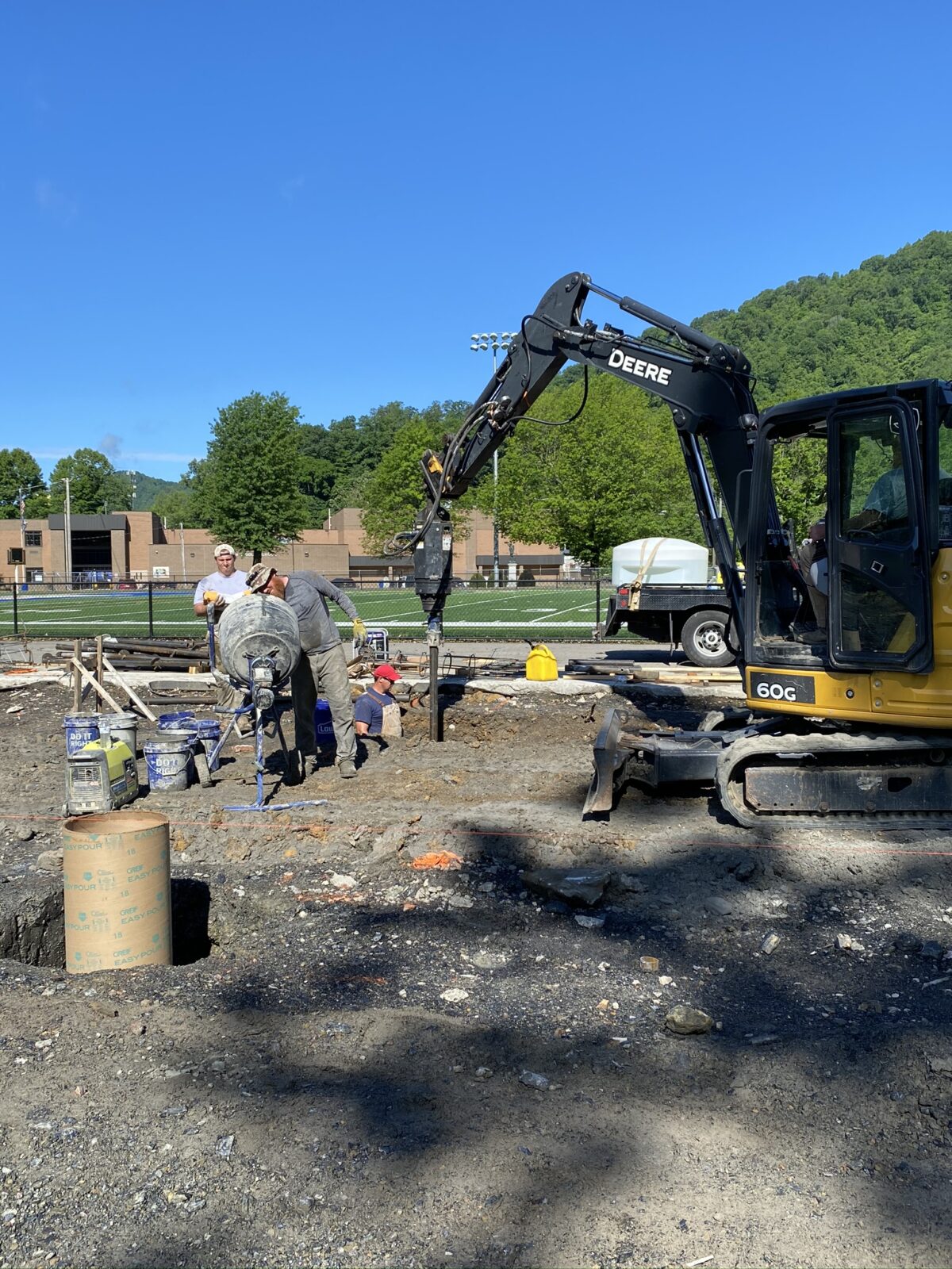 Install 45 grouted helical piles for the foundation of new bleachers at Logan High School Football Field. The school and football field are located on a narrow island in the Guyandotte river known as Hatfield Island. Most of the soil was random fill, coal refuse, and slate. This was brought in many years before from local mining operations. Because of the poor soils, Kanti Patel at American Geotech called out for these piles to be the Magnatude Piles. The end bearing on the bedrock roughly 40′ below the top of pile.