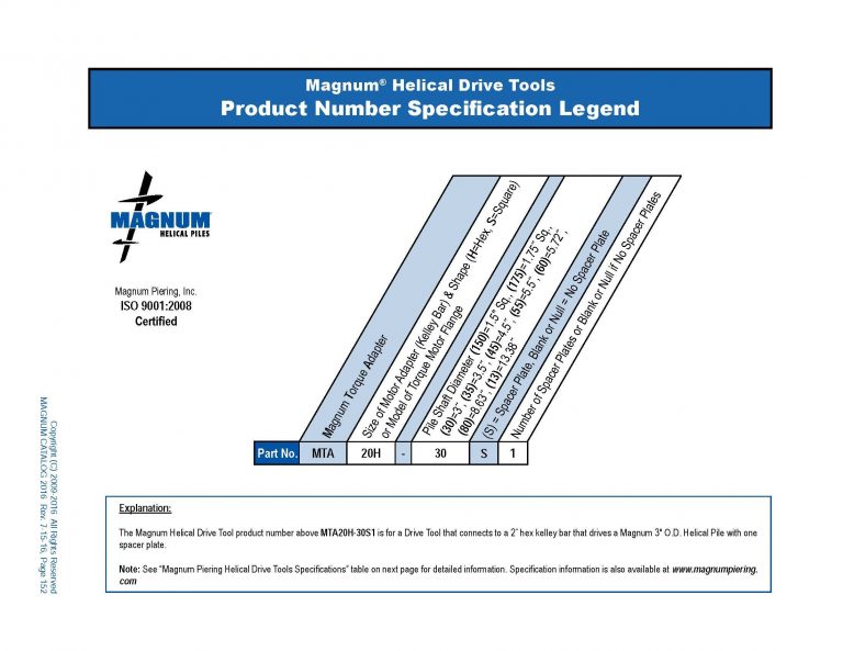 Table which describes how to read part numbers for Magnum helical drive tools