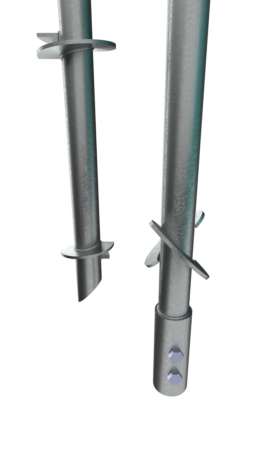 MAGNATUDE® propulsion grout piles combine the unique benefits of helical installation with grouted displacement piles. MAGNUM® products are manufactured in the USA according to our ISO 9001 approved Quality Program. Our MAGNATUDE® piles utilize rigid bolted couplings to join extension sections and the lead section. This Extends the grout column and placing the helical bearing elements down to the desired bearing stratum. Structural capacities are developed according to AISC 360 and consider buckling length of 5 ft unbraced length. Grout displacement plates create an annular space which is filled by grout that is propelled down from the grout reservoir at the surface by the grout propellers that are spaced along the pile shaft. Grout is relied upon for ground improvement, adhesion and corrosion protection only. Required depth of the pile depends on ground conditions and should be determined for each site by a design professional.