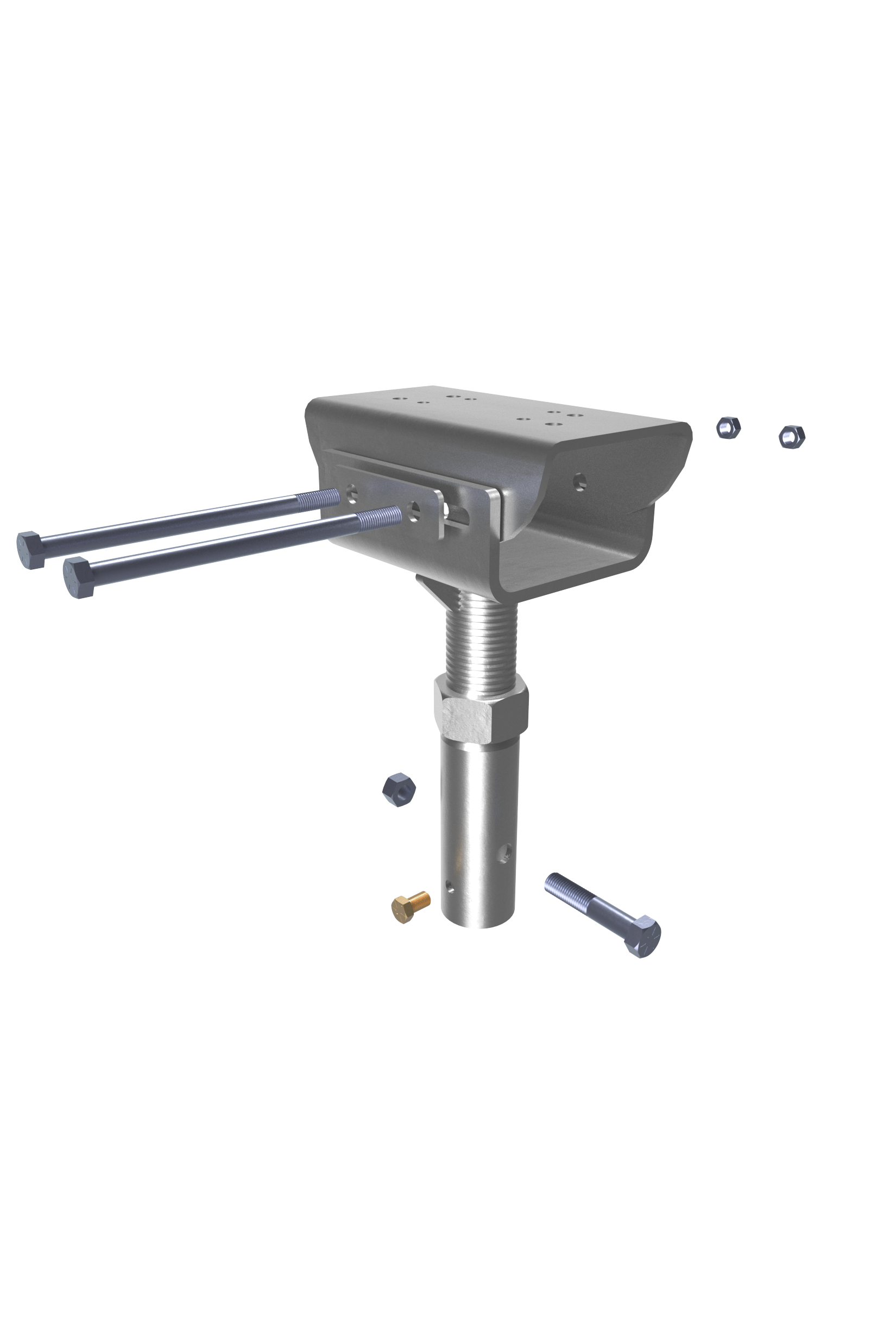 MHC1088-3BR1 Pipe Support Caps (steel cap) consist of a collar tube with a bolt hole for connection to MAGNUM® helical piles and an adapter plate secured to a large diameter threaded bar that allows up to 3” of elevation adjustability and +/-2” of lateral adjustability. The unique design of this cap allows it to be used in pipe support applications where lateral loads will be applied to the top of the pile head, which generally cause bending that can only be resisted by the strength of the large threaded bar. MAGNUM® products are manufactured in the USA according to our ISO 9001 approved quality program. Structural capacities are developed according to AISC 360 considering an average design life of 75 years for spray galvanized steel in most soil conditions. Design and detailing of the piping system to which pipe support caps are attached varies by project and is the responsibility of the registered design professional.