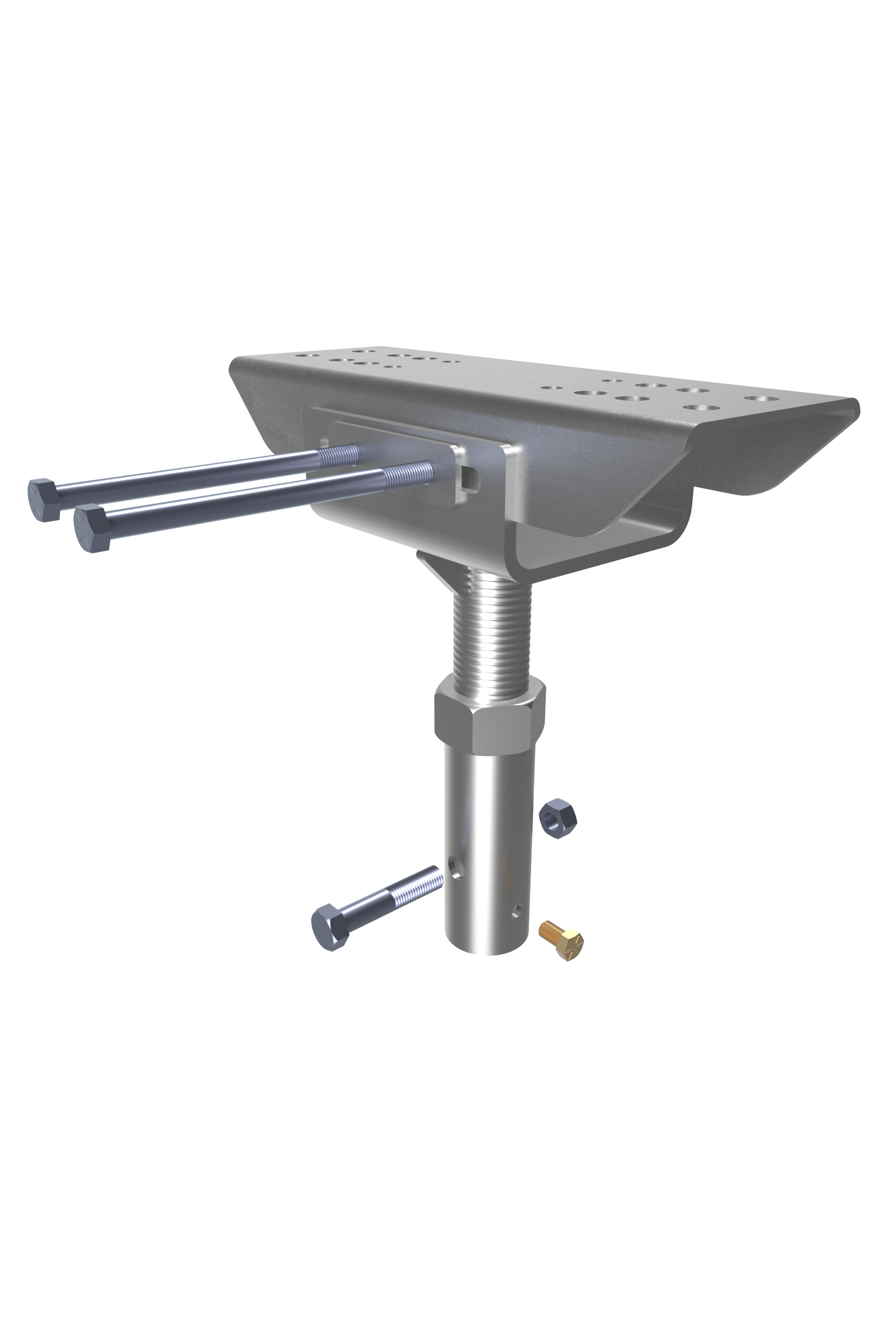 MHC1091-3BR1 Pipe Support Caps (steel cap) consist of a collar tube with a bolt hole for connection to MAGNUM® helical piles and an adapter plate secured to a large diameter threaded bar that allows up to 3” of elevation adjustability and +/-2” of lateral adjustability. The unique design of this cap allows it to be used in pipe support applications where lateral loads will be applied to the top of the pile head, which generally cause bending that can only be resisted by the strength of the large threaded bar. MAGNUM® products are manufactured in the USA according to our ISO 9001 approved quality program. Structural capacities are developed according to AISC 360 considering an average design life of 75 years for spray galvanized steel in most soil conditions. Design and detailing of the piping system to which pipe support caps are attached varies by project and is the responsibility of the registered design professional.