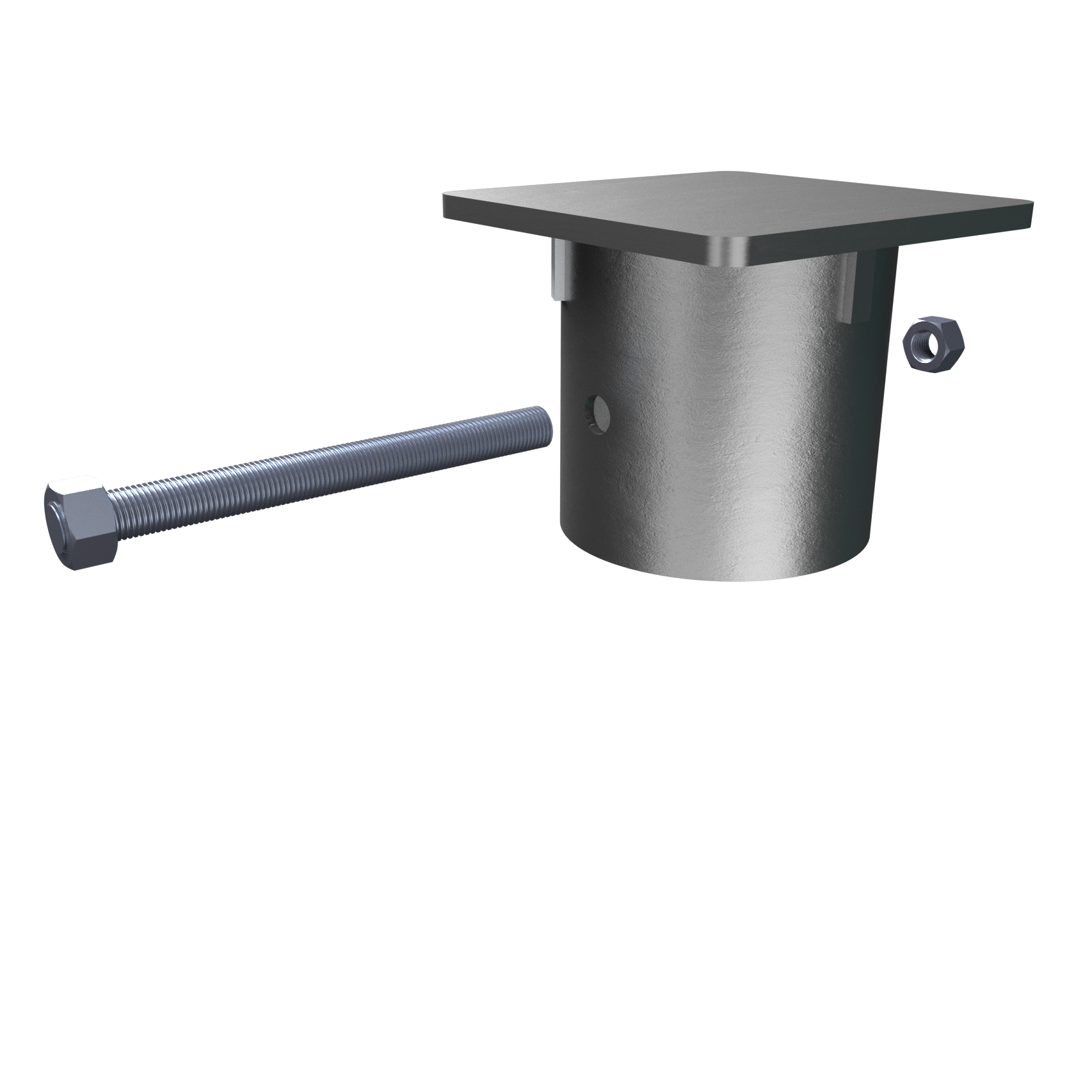 After installation of a Magnum Helical Pile to the correct depth, torque, and capacity, cut-off the pile shaft at the proper elevation. Drill (1) 1-9/16” holes using a Magnum drill template. Place the pile cap over the shaft and secure with (1) 1-1/2” bolts. Ensure direct bearing of plate on pile shaft. Snug tighten nut. Place reinforcing steel as required for the project and cast concrete over and around the pile cap. Cap capacity is based on embedment in concrete pile cap at least 4x larger than plate size and minimum 2,500 psi concrete.