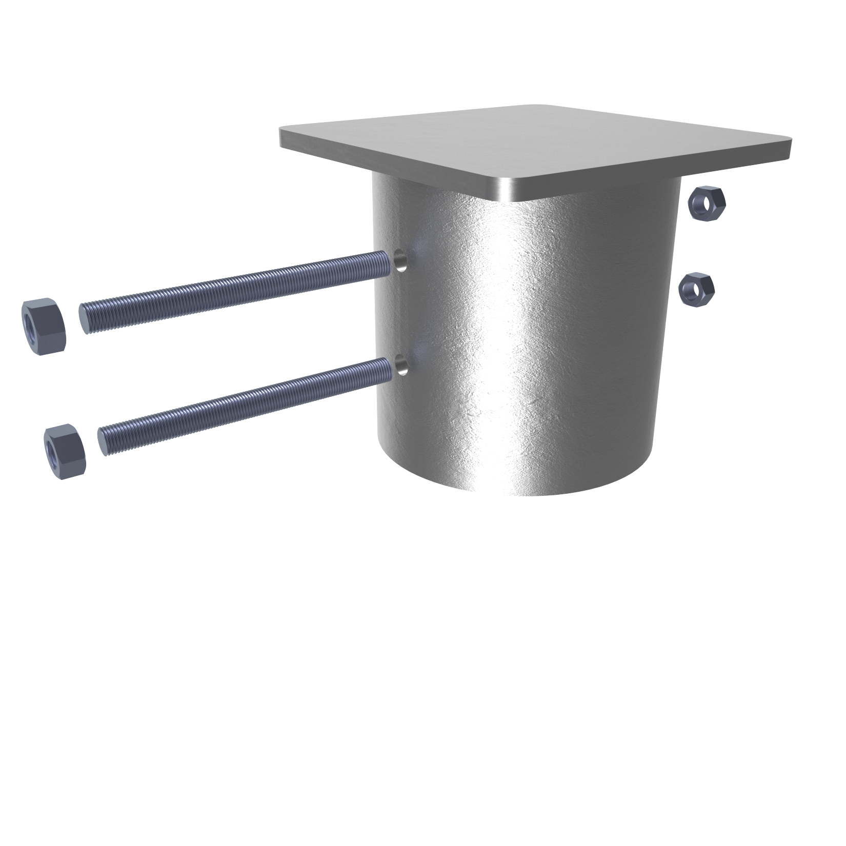 MHC1300-16P1818B2 Bearing Plate Caps (steel cap) consist of a collar tube with bolt holes for connection to MAGNUM® helical screw piles and steel bearing plate for embedment in cast-in-place concrete. MAGNUM® products are manufactured in the USA according to our ISO 9001 approved quality program. Structural capacities are developed according to AISC 360 and ACI 318 considering an average design life of 75 years for bare steel in most soil conditions. Hot-dip galvanizing is available upon request. Design and detailing of the structure to which the bearing plate cap is embedded in varies by project and is the responsibility of the registered design professional