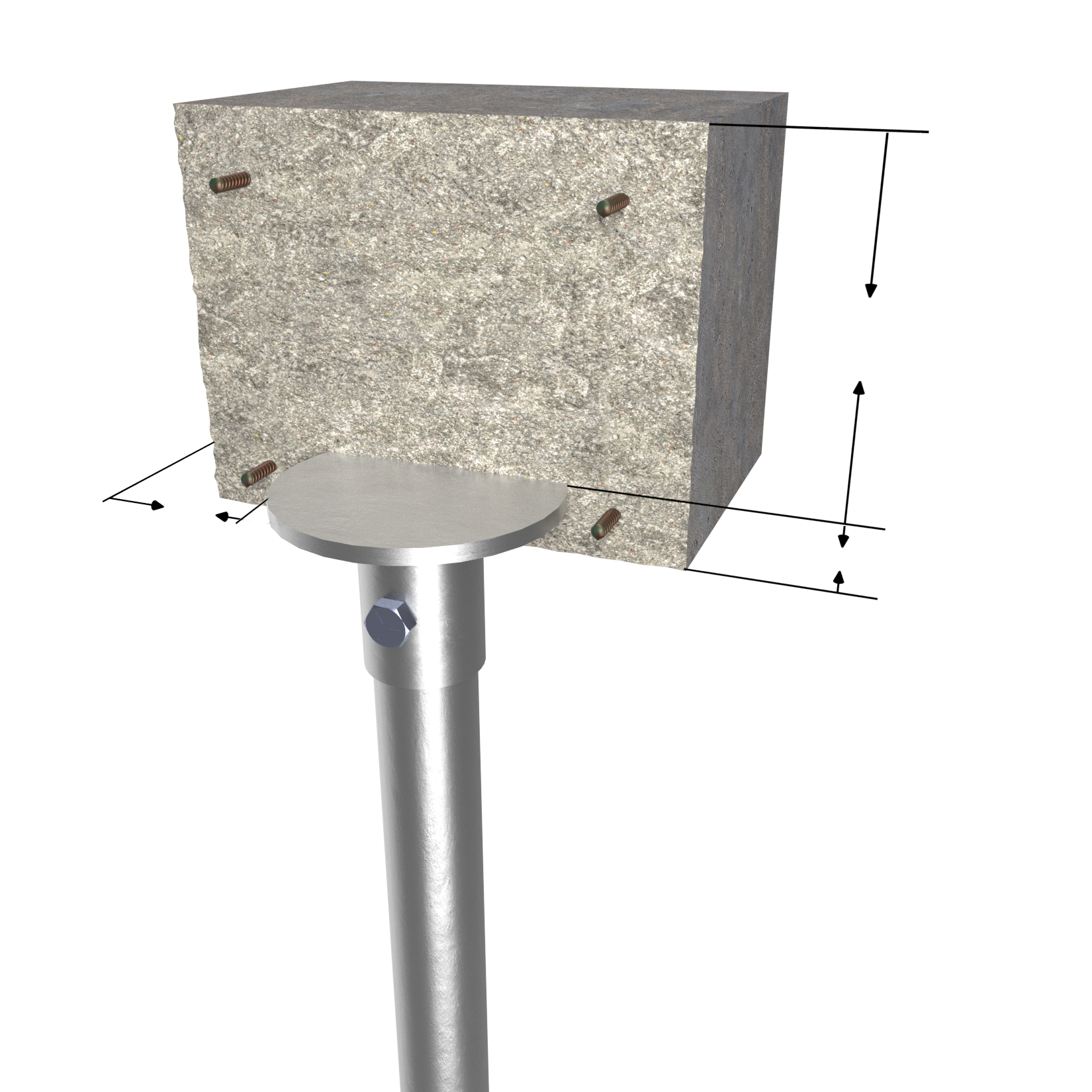 Bearing Plate Caps consist of a collar tube with bolt hole for connection to MAGNUM® helical piles and steel bearing plate for embedment in cast-in-place concrete. MAGNUM® products are manufactured in the USA according to our ISO 9001 approved quality program. Structural capacities are developed according to AISC 360 and ACI 318 considering an average design life of 75 years for bare steel in most soil conditions. Hotdip galvanizing is available upon request. Design and detailing of the structure to which the bearing plate cap is embedded in varies by project and is the responsibility of the registered design professional.