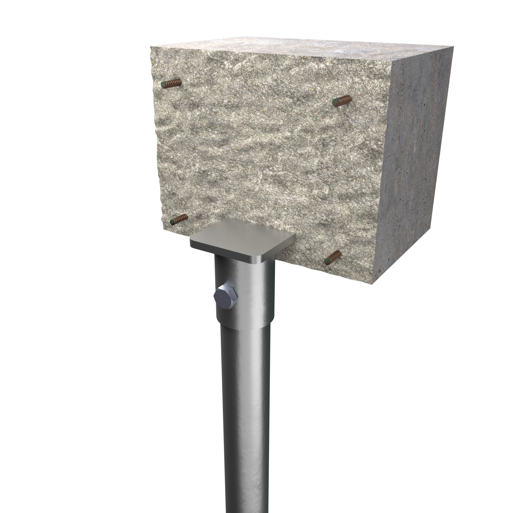 After installation of a Magnum Helical Pile to the correct depth, torque, and capacity, cut-off the pile shaft at the proper elevation. Drill (1) 1-9/16” holes using a Magnum drill template. Place the pile cap over the shaft and secure with (1) 1-1/2” bolt. Ensure direct bearing of plate on pile shaft. Snug tighten nut. Place reinforcing steel as required for the project and cast concrete over and around the pile cap. Cap capacity is based on embedment in concrete pile cap at least 4x larger than plate size and minimum 2,500 psi concrete.