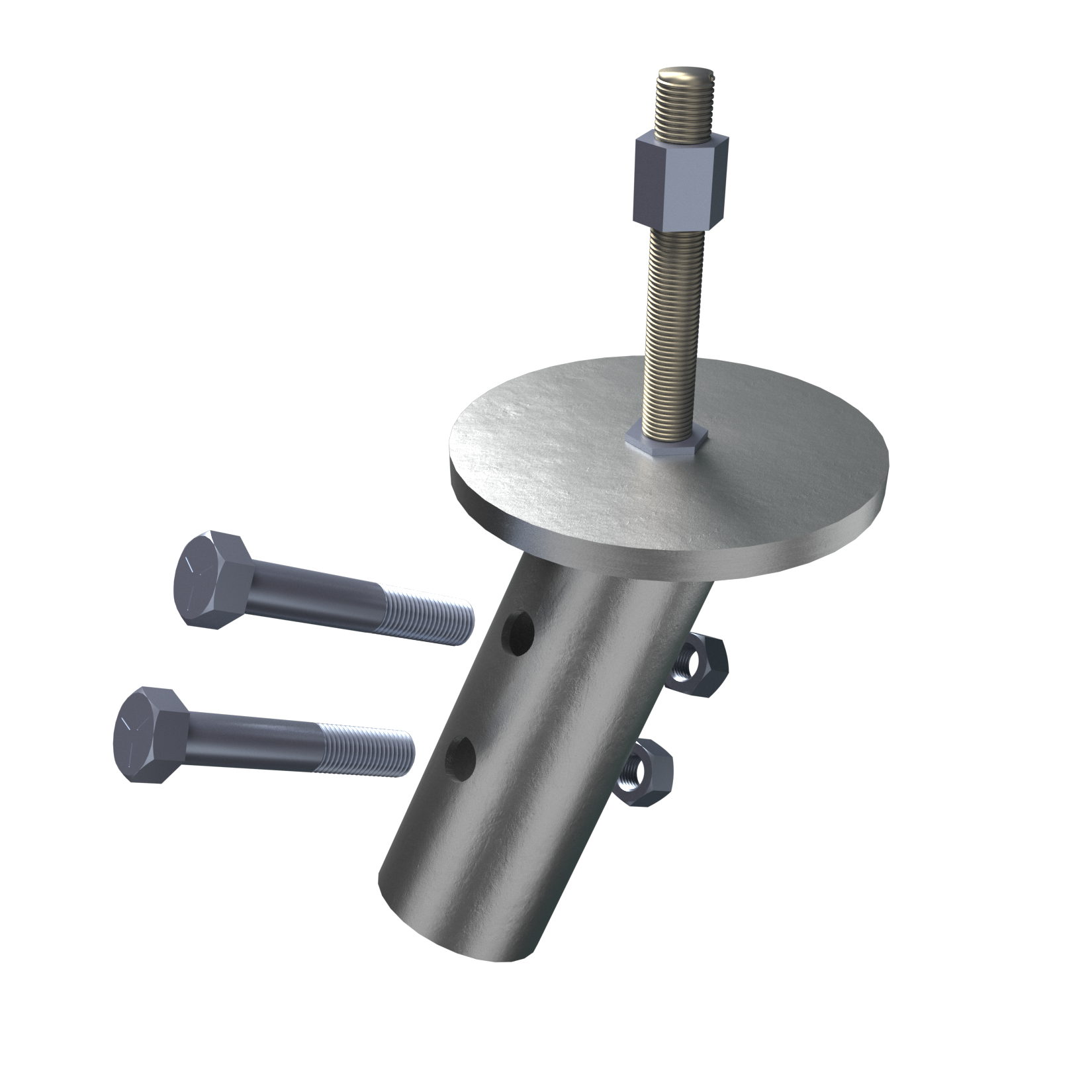 Install a MAGNUM® Helical Pile to the correct depth, torque, and capacity. Cut-off the pile shaft at the proper elevation. Drill (2) 1-5/16” holes through the shaft using a MAGNUM® drill template. Place the cap over the shaft and secure with (2) 1-1/4” bolts. Snug tighten nuts. Alternatively, drilling through pile may be omitted and plug welds may be used to secure cap to pile in place of bolt(s). See MAGNUM® Technical Bulletin TB004. Ensure direct bearing of plate on shaft. Affix the structure to the pile cap by installing a threaded rod through the connection point into the integrated nut in the cap. Connection to structures vary by project, tightness and fit-up requirements are the responsibility of the registered design professional.