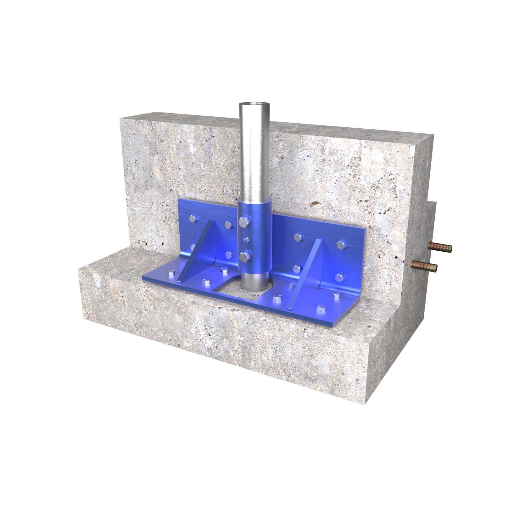 MP1006-3 reverse angle bracket consists of a collar tube with (3) 3/4˝ threaded bolt holes for connection to MAGNUM® Push Piers or Helical Piles and a steel angle with thru holes for attachment to existing concrete using expansion anchors. MAGNUM® products are manufactured in the USA according to our ISO 9001 approved quality program. MAGNUM® brackets are designed in accordance with ICC-AC358, IBC, ACI, and AISC codes. Design and detailing of the connection to the structure varies by project and is the responsibility of the registered design professional including maximum concrete span, pier spacing, concrete shear, and concrete bearing.