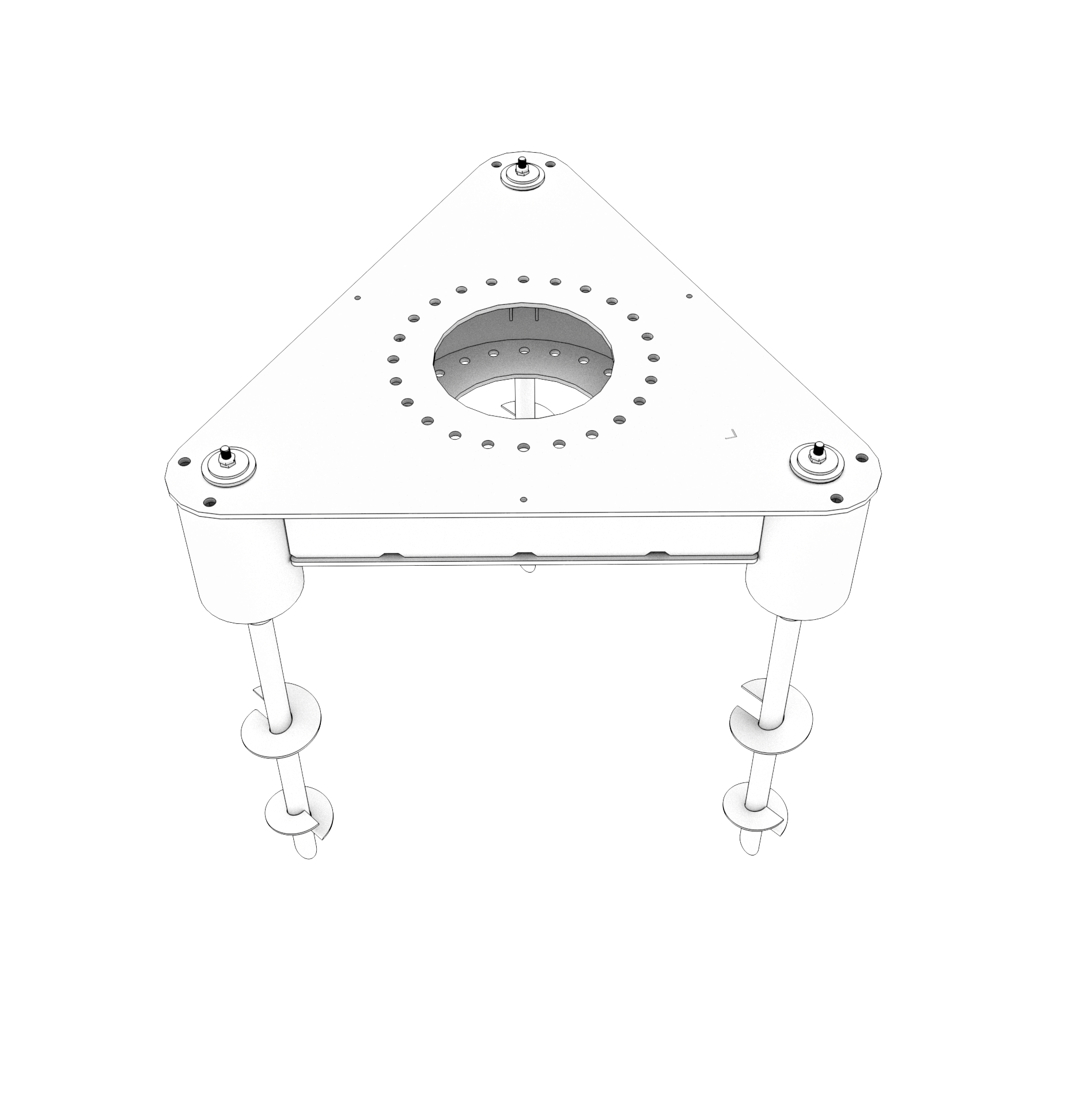 After Installation of MAGNUM® helical piles, cut off excess pile shafts to the desired elevation. Then install MAGNUM® MHC1304 pile end caps on each pile. Install the MUG133-7 Utility Grillage on top of the end caps. Connect to the piles using provided threadbar and washer plates. MUG connection detail allows up to 3" pile location tolerance to accommodate typical pile installations. After MUG is fastened in place, directly mount the structure onto the central mounting plate and secure in place. #Electric Power Transmission
